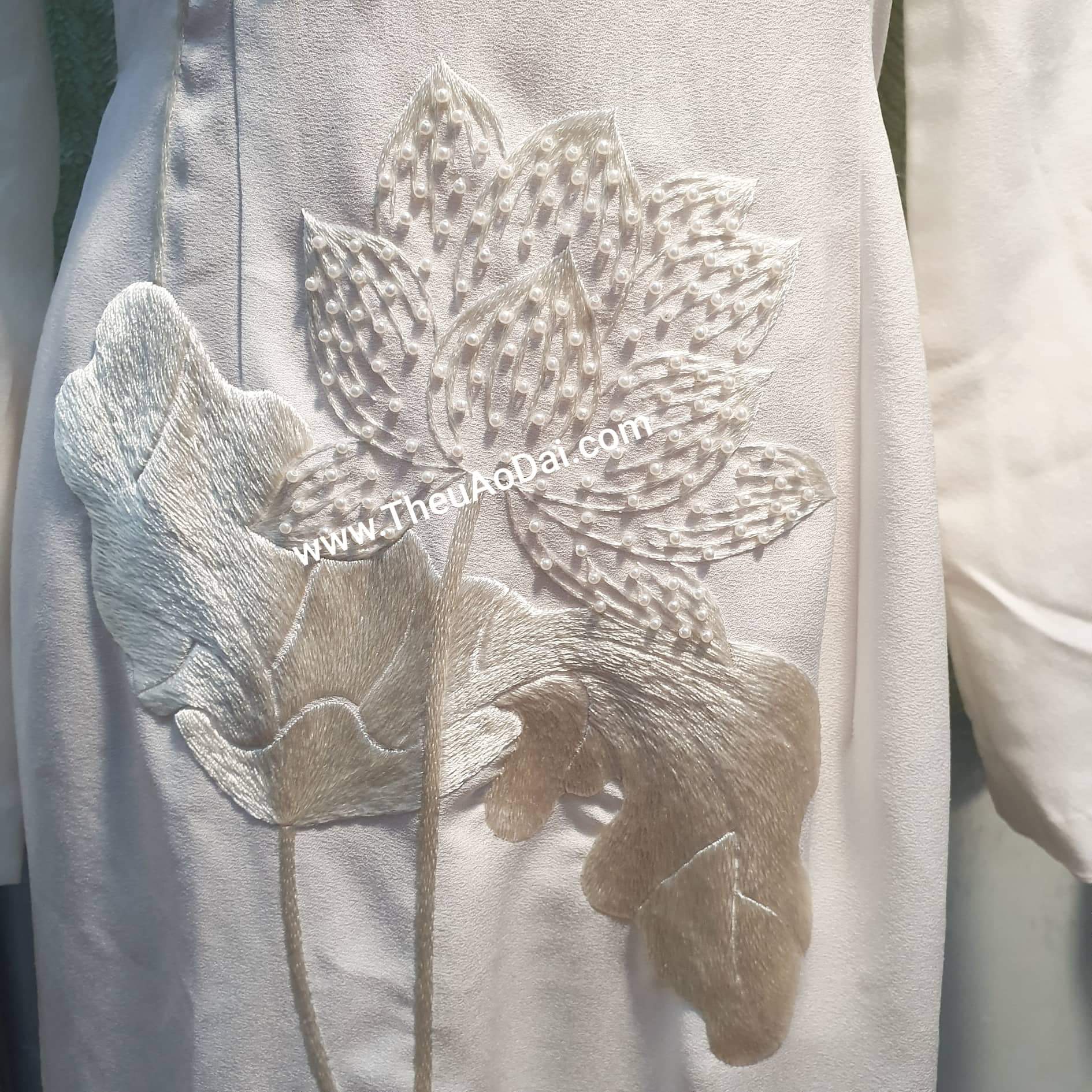 • Kỹ thuật: 100% thêu tay thủ công - Áo dài thêu tay